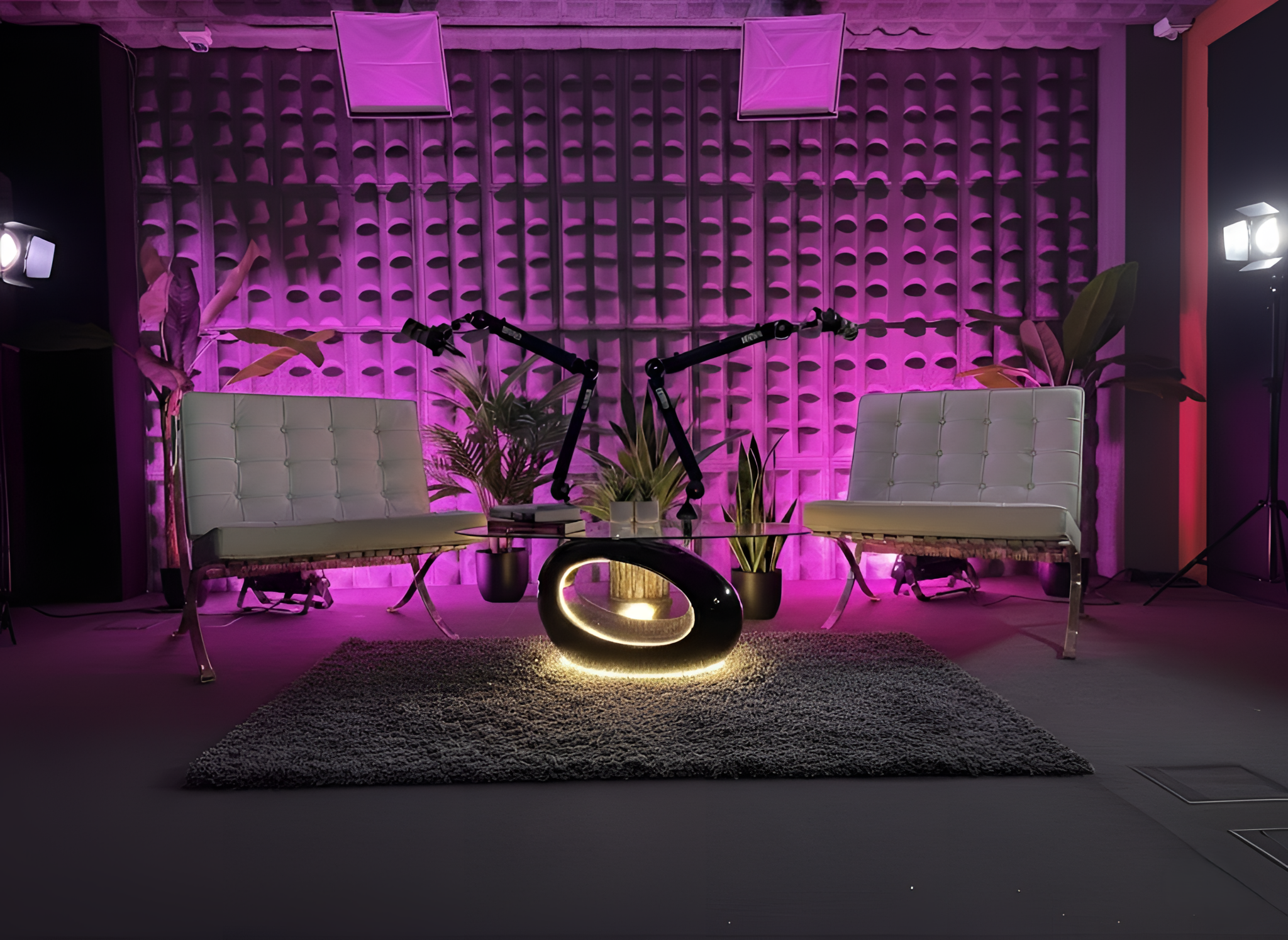 Contamos con 3 cámaras fijas, iluminación profesional y set adaptable, ideal para crear contenido para YouTube, Spotify Video, TikTok o Instagram.
